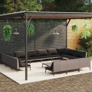 14 Piece Garden Lounge Set with Cushions Poly Rattan Dark Grey