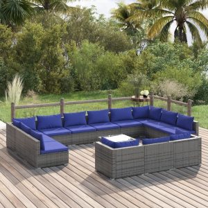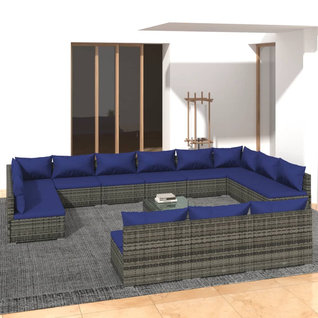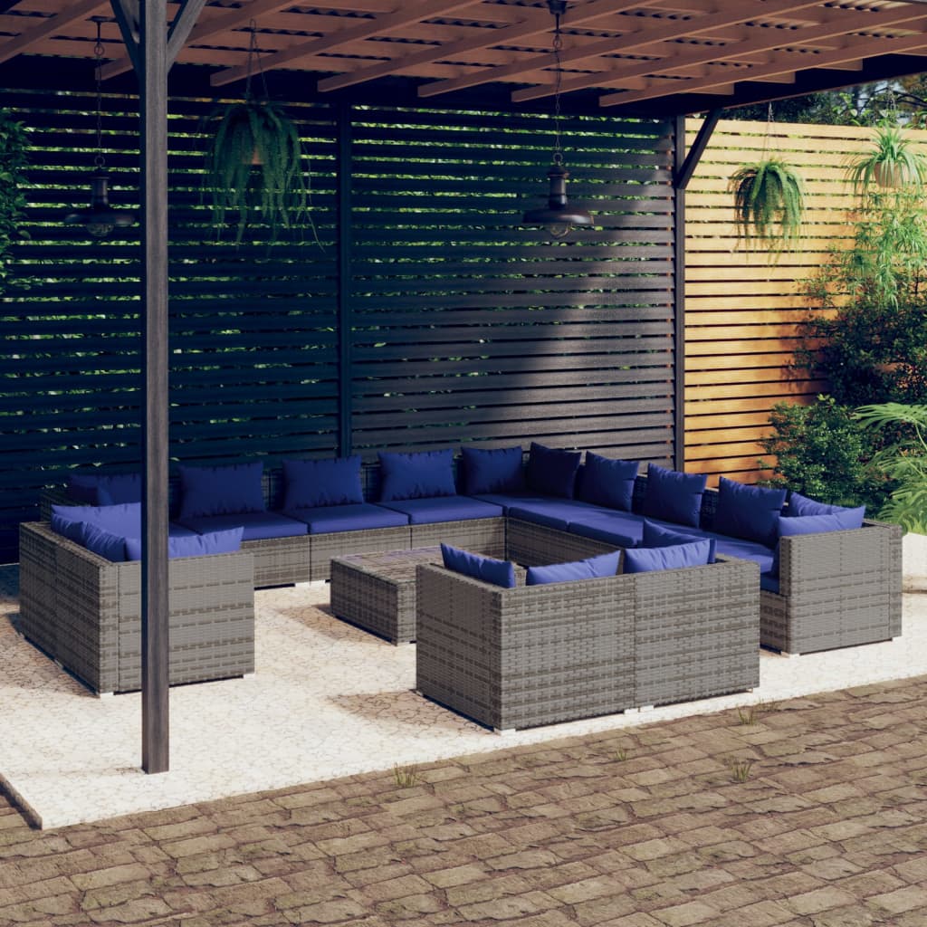 14 Piece Garden Lounge Set with Cushions Grey Poly Rattan