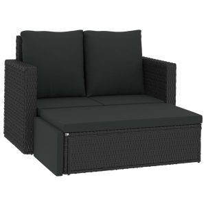 2 Piece Garden Lounge Set with Cushions Poly Rattan Black