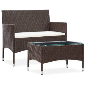 2 Piece Garden Lounge Set with Cushion Poly Rattan Brown
