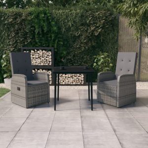 3 Piece Garden Dining Set with Cushions Grey and Black