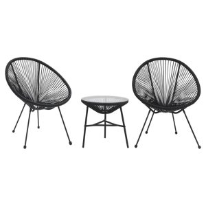 Colour: Black, transparentMaterial: Round PVC rattan, powder-coated steel, glassTable dimensions: 45 x 41.5 cm (Diameter x H)Chair dimensions: 80 x…