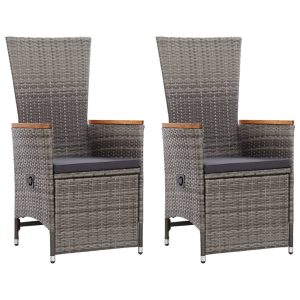 Reclining Garden Chairs 2 pcs with Cushions Poly Rattan Grey